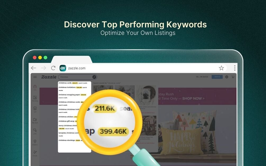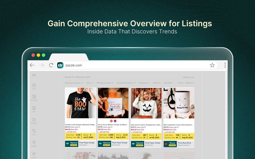 Gain a competitive edge with our powerful Chrome extension designed exclusively for Zazzle users and sellers. Unlock the potential of data-driven decision-making by accessing comprehensive insights and analytics right at your fingertips.